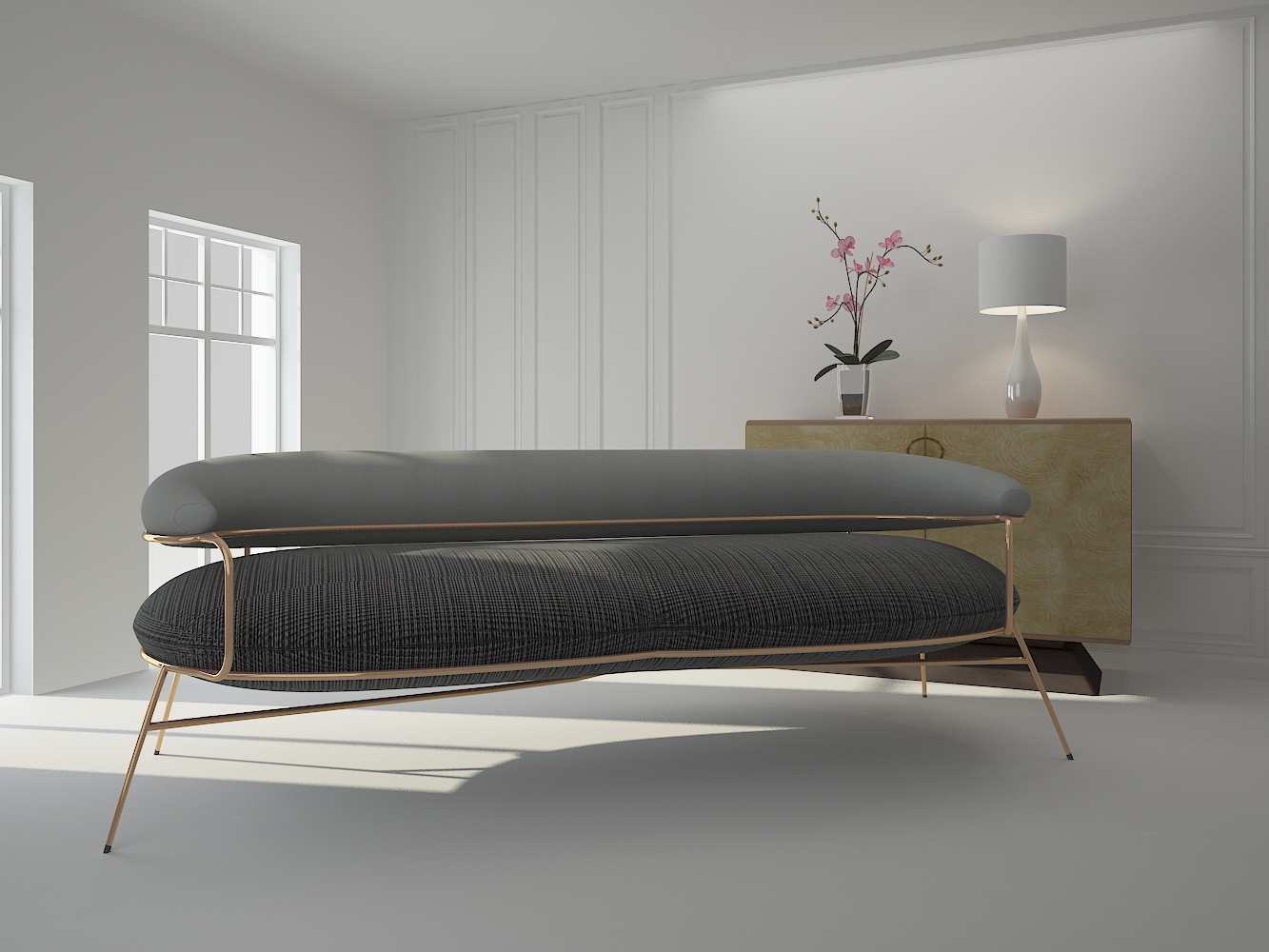 كرسي بثلاث مقاعد وقواعد ذهبية انيقة يضيف المزيد من الاناقة للمنزل